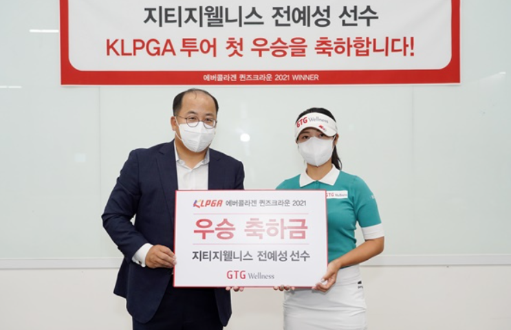 헬스케어 전문 기업 지티지웰니스가 소속 선수인 전예성(20)의 한국여자프로골프(KLPGA) 투어 생애 첫 우승을 격려했다. 지티지웰니스는 22일 오전 경기도 성남시 분당구 본사 2층 대회의실에서 '전예성 선수 KLPGA 투어 우승 축하 및 격려행사'를 갖고, 전예성에게 우승 축하금을 전달했다. 전예성은 지난 18일 끝난 에버콜...