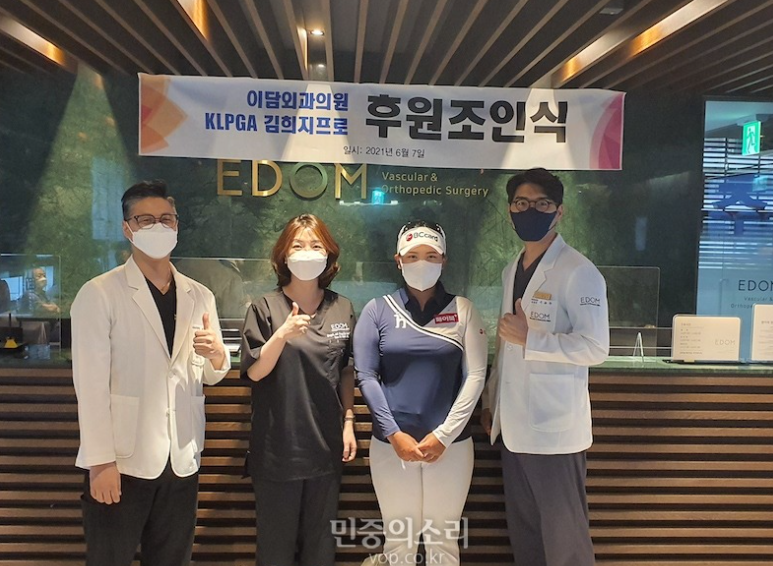 루키 프로골퍼 김희지(20ㆍBC카드)가 새로운 후원사와 손을 잡았다. 김희지는 7일 서울시 강남구 이담외과의원(대표원장 김현규)에서 후원 조인식을 갖고 서브 스폰서를 조건으로 한 양해 각서에 사인했다. 김희지는 향후 1년간 상의 한쪽 옷깃에 이담외과의원 로고를 달고 경기에 나선다. 이담외과의원은 김희지와 그의 가족...
